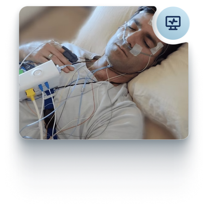 Realizamos exame de polissonografia em ambiente domiciliar para um diagnóstico preciso e a identificação da causa de seu problema de sono.